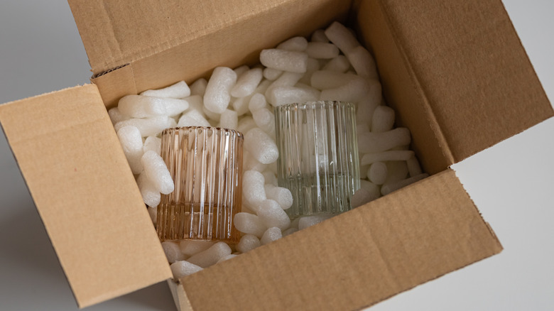 When packing glassware before a move, your work starts by assembling the right packing supplies. Honeycomb packing paper is a must, but you'll also find that old dish towels can help cushion fragile items. Begin by creating a cushy base by crumpling up large wads of packing paper. Individual items can then be wrapped with multiple sheets of packing paper until you can't feel the edges anymore. Pointy corners and sharp edges can chip quickly in transit, so don't hesitate to cushion these further if needed.