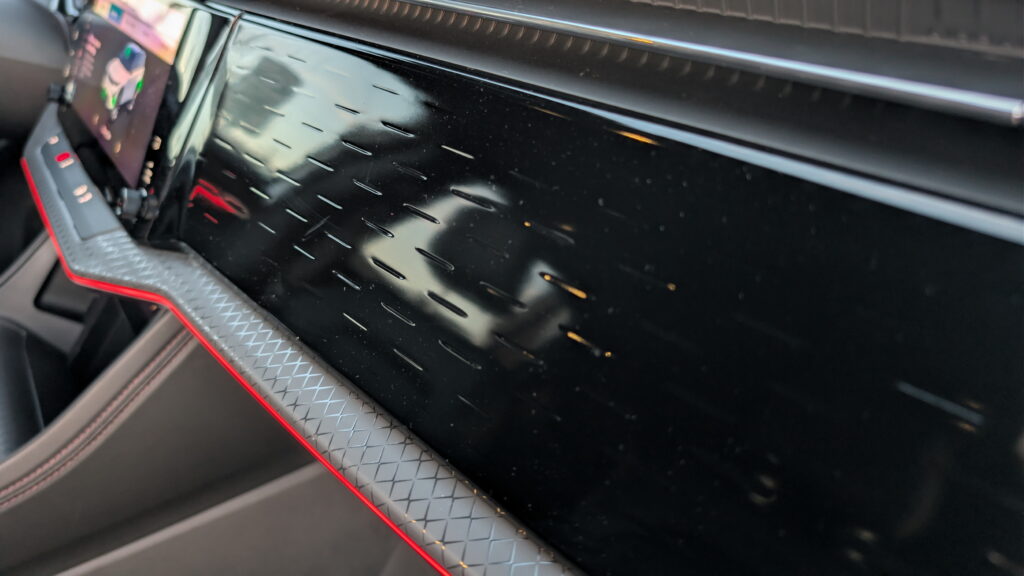 That giant piano-black plastic panel on the passenger side of the dash is an absolute eyesore. It looks cheap. It feels cheap. And it becomes a magnet for dust and fingerprints almost immediately. Jeep does offer an optional front passenger display, which at least gives that panel a purpose, but our test car didn’t have it, and without it, that glossy slab just feels like cost-cutting dressed up as design.